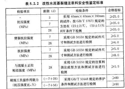 對于裂縫修補材料來說,其材料的安全性能指標,必須符合GB50728-2011《工程結(jié)構(gòu)加固材料安全性鑒定技術(shù)規(guī)范》的規(guī)定: