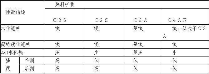表2.1硅酸鹽水泥熟料礦物水化、凝結(jié)硬化特性