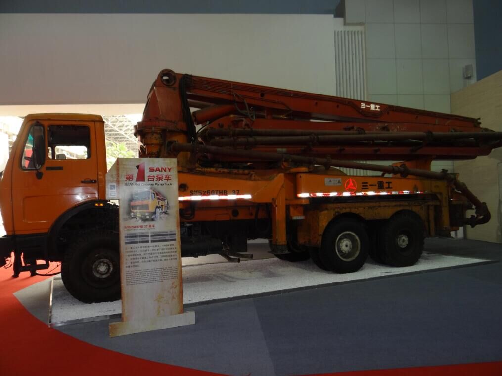 在三一重工的工廠大廳還展示著三一重工自主研發(fā)的第一臺泵車,1998年研制,1999年交付,它的誕生一舉打破了當時洋品牌泵車一統(tǒng)中國的局面,對于中國泵車發(fā)展具有劃時代的意義。這臺泵車在青海工作近11年,2009年收藏進入三一展館時仍在為客戶創(chuàng)造價值,是國內使用壽命最長的泵車。