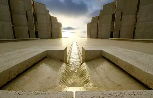 路易斯·康設(shè)計(jì)的加利福尼亞索爾克研究所,是一件大師級(jí)的作品。這里既是“具有學(xué)術(shù)氛圍的隱居之所”,也是科學(xué)研究的靈感之地?;炷恋臐仓?,利用了從羅馬建筑研究汲取的技術(shù)。為了充分體現(xiàn)混凝土材料的特色,建筑師在材料設(shè)計(jì)完成后沒有再做任何的裝飾。