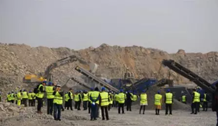工地參觀也是此次論壇的重要環(huán)節(jié)。全體嘉賓來(lái)到山東淄博依廠礦業(yè)的石灰石采石場(chǎng),近距離了解克林曼移動(dòng)式破碎篩分設(shè)備的性能及生產(chǎn)出的骨料質(zhì)量。