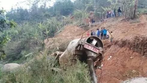 白石人劉某駕駛掛著桂K Y1093號牌的混凝土攪拌車,拉一車混凝土前往白雞村卸完混凝土后其駕車沿省道S370從白雞方向返回, 當(dāng)車輛行經(jīng)白雞村干河一下坡急轉(zhuǎn)彎路段時懷疑閃避2名學(xué)生,車輛失控翻下數(shù)十米深的溪澗中,當(dāng)?shù)匦l(wèi)生院、公安民警、消防接報(bào)先后趕到現(xiàn)場處置開展救援。