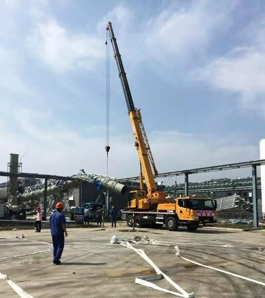 23日下午,由6名人員、4臺起重機、1臺挖掘機和兩輛服務車組成的救援小分隊趕到鹽城阜寧縣災區(qū),緊急與當地救援武警、政府取得聯(lián)系,聽從統(tǒng)一指揮,全力投入現場搶險。