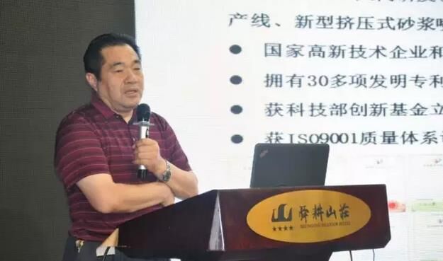 ▼ 山東方達康工業(yè)纖維素有限公司總經(jīng)理馮文利做“預拌砂漿調(diào)配技術商榷”的演講;
