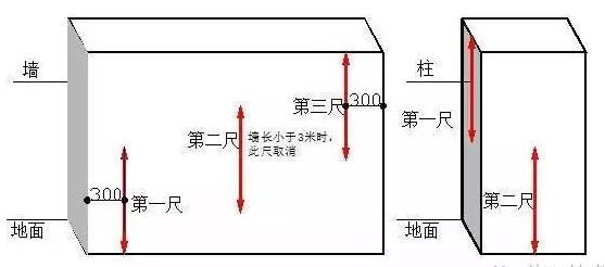 二、截面尺寸偏差1、指標(biāo)說明:反映層高范圍內(nèi)剪力墻、混凝土柱施工尺寸與設(shè)計圖尺寸的偏差。2、測量工具:5m鋼卷尺3、測量方法和數(shù)據(jù)記錄(1)以鋼卷尺測量同一面墻/柱截面尺寸,精確至毫米。(2)同一墻/柱面作為1個實測區(qū),累計實測實量不少于5個實測區(qū)。每個實測區(qū)從地面向上300mm和1500mm各測量截面尺寸1次,選取其中與設(shè)計尺寸偏差最大的數(shù),作為判斷該實測指標(biāo)合格率的1個計算點。4、示例: