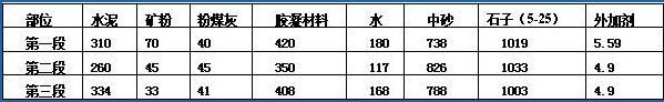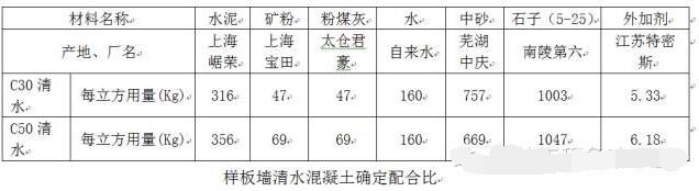最終,第四段樣板墻實踐完成后,根據(jù)業(yè)主、監(jiān)理、設(shè)計等各方的意見最終明確正式清水混凝土施工的配合比: