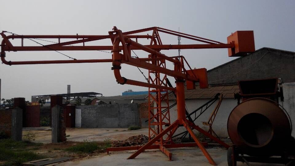 河南金源布料機(jī)桿采用回轉(zhuǎn),臂架式布料結(jié)構(gòu),配用125MM輸送管,360度回轉(zhuǎn),整機(jī)手動(dòng)操作。具有結(jié)構(gòu)簡單,強(qiáng)度、剛性可靠,操作簡單,靈活,維修方便等特點(diǎn),與混凝土泵配套使用可廣泛的應(yīng)用于民用與工業(yè)建筑的混凝土澆注工程中。