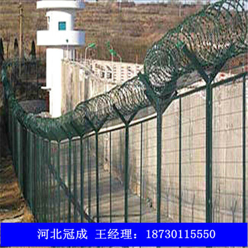 監(jiān)獄圍欄網(wǎng)可平地安裝,也可在圍墻上二次安裝,有效防止攀逃。直刺式刺網(wǎng)隔離帶,是用柱體和普通刺繩橫、縱、斜向交叉綁定成刺網(wǎng)隔離帶。主要用于特殊地帶、軍事基地圈護(hù)、溝壕圈護(hù),安裝簡(jiǎn)易,經(jīng)濟(jì)耐用?! ?
