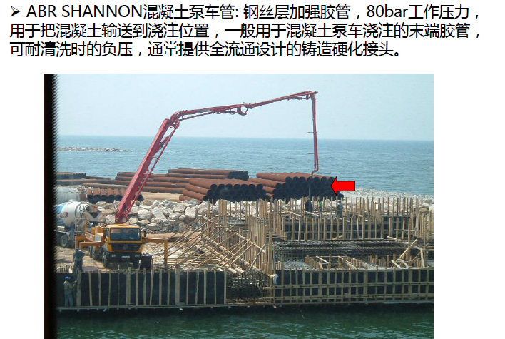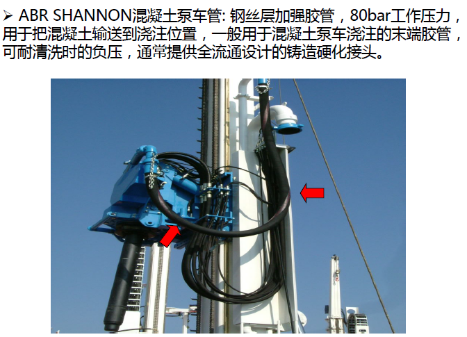 應(yīng)用范圍: 鋼絲層加強(qiáng)膠管,85bar 工作壓力,用于把混凝土輸送到 澆注位置;一般用于混凝土泵車(chē)澆筑的末端膠管,管子可以耐清 洗時(shí)的負(fù)壓,通常提供全流通設(shè)計(jì)的鍛造硬化接頭