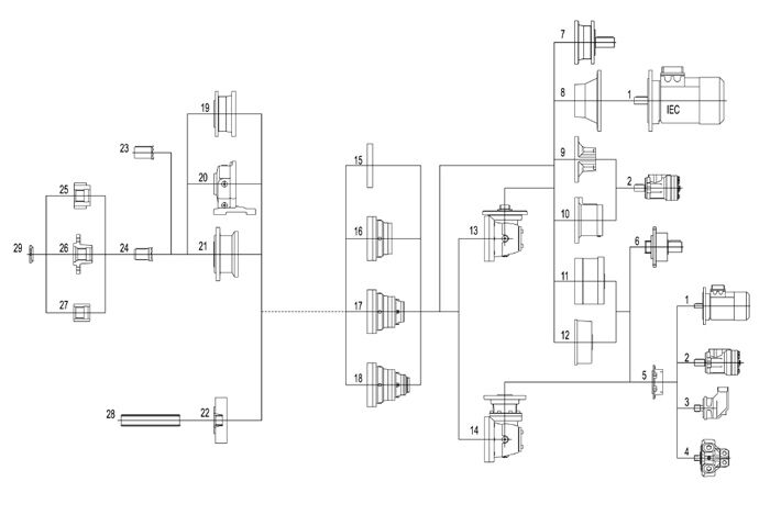 —輸入型式:高速輸入軸,電動,液壓馬達的接盤;多碟制動器等。