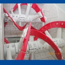 普通雙臥軸攪拌機的攪拌臂軸向及徑向均為流線型,攪拌過程中不僅對物料產(chǎn)生徑向切割作用,而且更有效的起軸向推動作用,使物料攪拌更劇烈,短時間達到混凝土的均質(zhì)狀態(tài),且由于攪拌裝置設(shè)計獨特,能提高了水泥的利用率。而具有專利設(shè)計的雙螺帶攪拌裝置,攪拌過程兩軸相向轉(zhuǎn)動,葉片產(chǎn)生的攪拌力,使攪拌進物料在保證劇烈徑向運動的同時,軸向推動加劇,物料在攪拌筒內(nèi)成沸騰狀態(tài)短時間內(nèi)劇烈而充分攪拌,攪拌效率提高10%~15%,其它結(jié)構(gòu)攪拌機與之相比甚遠。從而使攪拌形式更多樣化,根據(jù)不同的混凝土要求,使攪拌更均勻,效率更高。