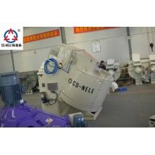 CQM系列高效強(qiáng)力混合機(jī)在強(qiáng)力混合機(jī)的料盤中,偏心安裝攪拌星與高速轉(zhuǎn)子。料盤以低速順時(shí)針?lè)较蛐D(zhuǎn),連續(xù)不斷地將物料送入中速逆時(shí)針轉(zhuǎn)動(dòng)的攪拌星的運(yùn)轉(zhuǎn)軌跡內(nèi),借助料盤旋轉(zhuǎn)及刮料板的作用,將物料翻轉(zhuǎn)送入高速逆時(shí)針旋轉(zhuǎn)的高速轉(zhuǎn)子運(yùn)行的軌跡內(nèi)進(jìn)行混料。在連續(xù)的、逆流相對(duì)運(yùn)動(dòng)的高強(qiáng)度混練過(guò)程中,物料能夠在很短的時(shí)間內(nèi)混合均勻一致,