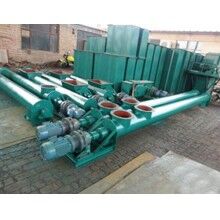 螺旋輸送機(jī)螺旋面的形式有實(shí)體螺旋(S制法)和帶式螺旋(D制法)兩種。各螺旋軸之間采用法蘭式聯(lián)接, 保證了聯(lián)接軸的互換性,便于維修。 螺旋輸送機(jī)機(jī)蓋為瓦片式并用蓋扣夾緊在機(jī)殼上,若需改進(jìn)密封性能,用戶可自行在機(jī)蓋與機(jī)殼間加防水粗帆布。 螺旋輸送機(jī)進(jìn),出料裝置有進(jìn)料口,方型出料口,手推式出料口,齒條式出料口四種,由用戶在使用現(xiàn)場在機(jī)體上開口焊接。布置螺旋輸送機(jī)進(jìn),出料口位置時應(yīng)注意保證料口至端部的距離,同時避免料口與吊軸承加油杯,機(jī)殼聯(lián)接法蘭,底座等相碰。