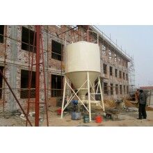 干粉砂漿儲料罐作為一個干粉砂漿的載體存放在施工工地,散裝干粉砂漿通過砂漿運輸車運輸?shù)焦さ?,?jīng)過氣力將干粉砂漿輸送到儲料罐中,使用時通過下端掛接的連續(xù)式攪拌機進行攪拌即可。