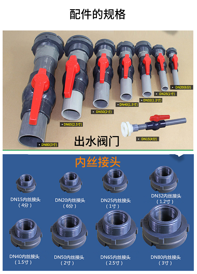 5、 塑料接頭出廠時是擰緊的,在運輸、裝卸時接頭可能會松掉,所以在使用前應(yīng)對接頭的密封性能進(jìn)行檢查,可加液體超過接頭部位觀察是否泄漏。盛裝化學(xué)液體的儲罐,*好用水試漏,以防造成大量損失。