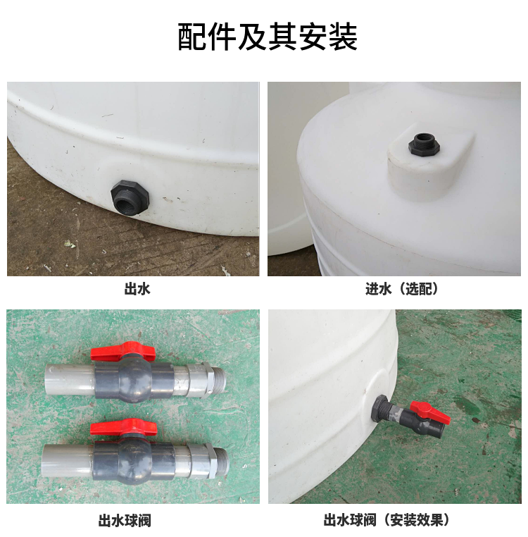 5、PE儲罐 配件根據(jù)客戶提供的用途進(jìn)行配置,有PP、PVC、ABS接頭,PP、PVC、PE法蘭可供選擇。在盛裝酸堿性物質(zhì)時,要配置PVC、PP或PE配件及耐酸堿墊圈。在盛裝有機(jī)物(特別是有機(jī)溶劑)時,配置不易溶解的橡膠墊圈。