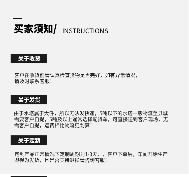 4、 大規(guī)格儲罐在安裝時要注意安全,盡量用吊機(jī),不知方法時,請聯(lián)系我們。