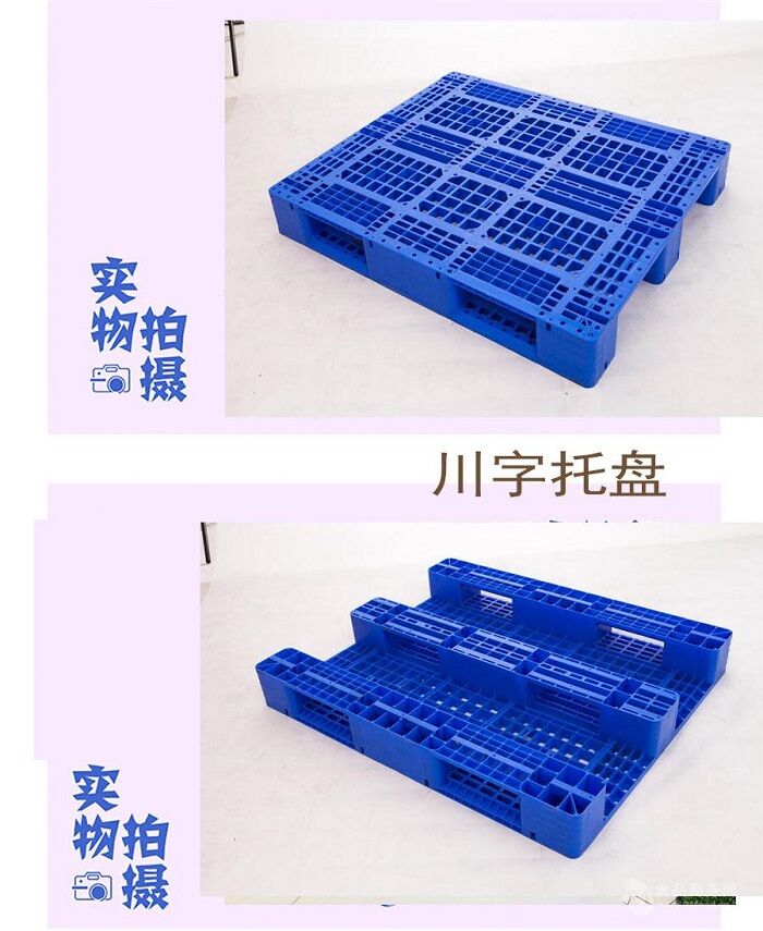 1210川字塑料托盤(加八根鋼管) 尺寸:1200×1100×150mm 進(jìn)叉形式:四向進(jìn)叉 適合電動叉車 手動液壓車 底部結(jié)構(gòu):單面字型 材質(zhì):抗沖擊HDPE 進(jìn)口全新料 靜載:4800kg 動載:1600kg