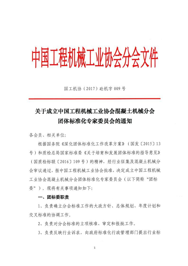 《關(guān)于成立中國(guó)工程機(jī)械工業(yè)協(xié)會(huì)混凝土機(jī)械分會(huì)團(tuán)體標(biāo)準(zhǔn)化專家委員會(huì)的通知》