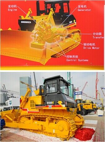 電傳動(dòng)大型礦車在大型礦山并不鮮見,但履帶式推土機(jī)采用電傳動(dòng)型式,在國(guó)內(nèi)尚屬首次,國(guó)機(jī)重工在bauma2014推出了D320E電傳動(dòng)履帶式推土機(jī)。